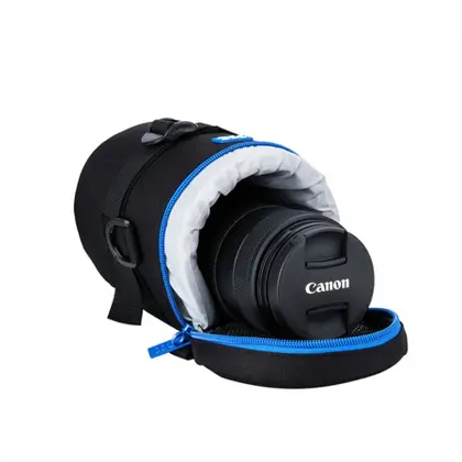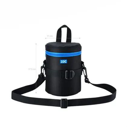 Bolsa apresenta construção de poliéster resistente com um interior cinza acolchoado. Ele fornece ótima proteção e absorção de impactos para sua lente. Além disso, seu material externo é resistente à água, o que pode proteger sua lente da chuva e umidade.